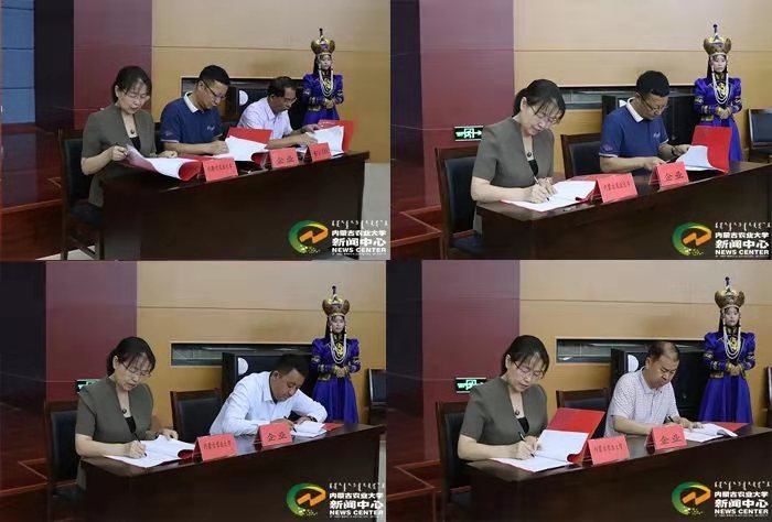 另外,在挂牌仪式上,塔娜副校长代表学校与磴口县人民政府、磴口县农牧和科技局、内蒙古汉垦地农产品有限公司、内蒙古华通农牧业科技有限公司签订了合作共建内蒙古农业大学磴口县乡村振兴综合试验站、华莱士瓜产业基地、番茄产业基地、林果产业基地框架性协议书,并为综合试验站和产业基地揭牌。