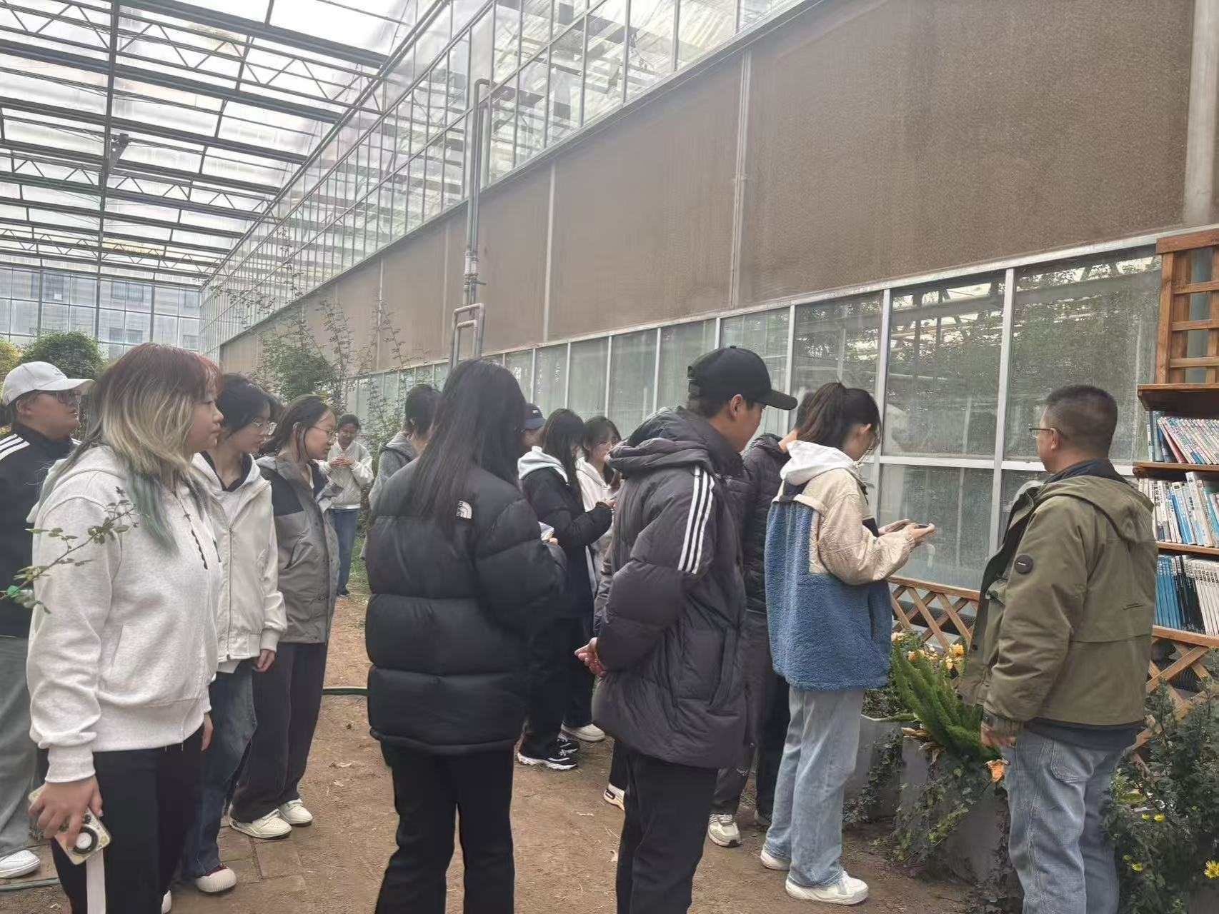 11月8日下午,我校选修智慧园艺微专业的同学们在168开奖官网 青年教师潘立本的带领下,前往内蒙古敕勒林海自然教育基地开展实践教学活动。本次活动特别邀请到内蒙古农业大学2007届园艺专业优秀校友、内蒙古科丰牧蕊鲜花品牌基地创始人段飞,为同学们分享创业经验与自然教育融合的实践成果。