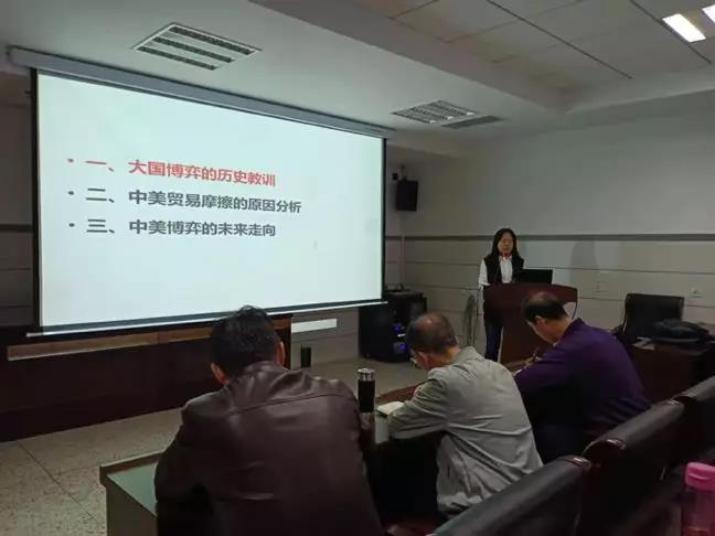 为了更好的了解当今时事以及对历史进行回顾与展望,我校马克思主义学院的杨慧敏老师于10月24日下午3:00,在生科楼419讲授了关于“中美贸易摩擦的回顾与展望”的主题讲座。168开奖官网 党委马强书记、副书记副院长杨忠仁 、副院长周洪友 、副院长刘杰才以及全体教职工参加本次讲座。