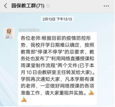 随后,教务处、图书馆、雨课堂技术部等部门协作,开始在微信群内发布相关的网课准备信息。