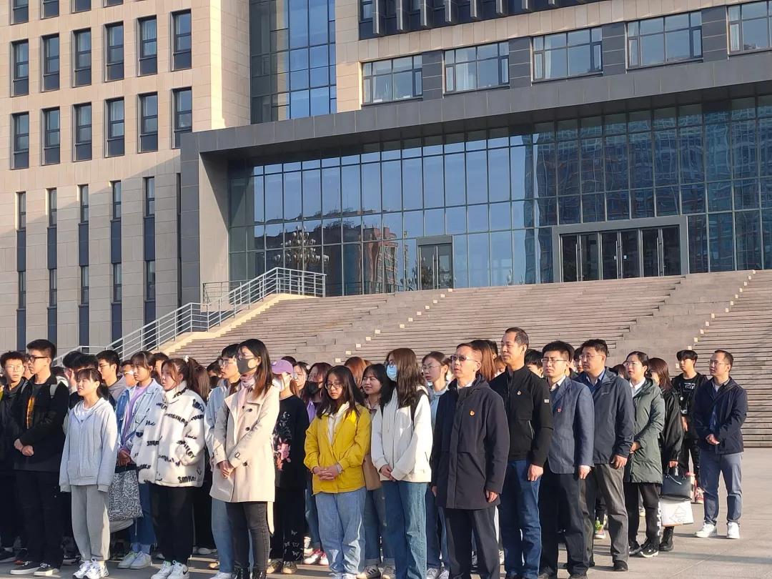 4月19日早上7:00,在新校区生科楼前举行168开奖网app 本学期升旗仪式。168开奖网app 书记马强、168开奖网app 副院长周洪友、168开奖网app 副书记张卫中、168开奖网app 副院长杨忠仁以及全体辅导员、班主任出席本次升旗。院团委郝凤英老师主持本次升旗仪式。