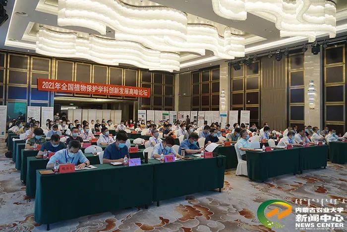 承办,内蒙古植物保护学会协办,是一次高层次、高水平、高质量的学术盛宴。旨在深入落实全国教育大会精神,贯彻绿色发展理念,倡导绿色植保,助力脱贫攻坚,实现乡村振兴和农业现代化。来自全国10余所农林院校植物保护学院院长、学科负责人、教学骨干以及我校师生代表110余人围绕“十四五”期间植物保护学科的创新发展、机遇挑战、使命担当、“一懂双爱”复合应用型人才培养、科学研究和社会服务等内容进行了深入交流和探讨。