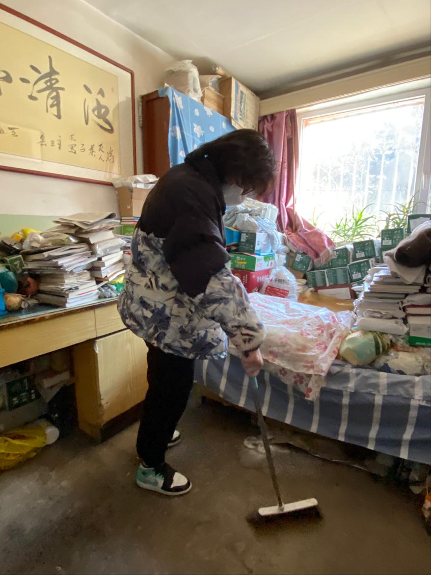 交谈中,大家得知叶大姐最近身体不是很好,家里的很多家务活没有做,老师、同学们当即决定帮助叶大姐进行新年前的大扫除。有的帮叶大姐整理桌面的书籍,有的擦拭窗台的尘土、修剪花枝,有的清理厨房杂物,还有的清洁地面,大家都很认真的做着自己的分配到的工作,希望通过自己的一点绵薄之力,能够使叶大姐家更整洁,生活环境更舒适一些。