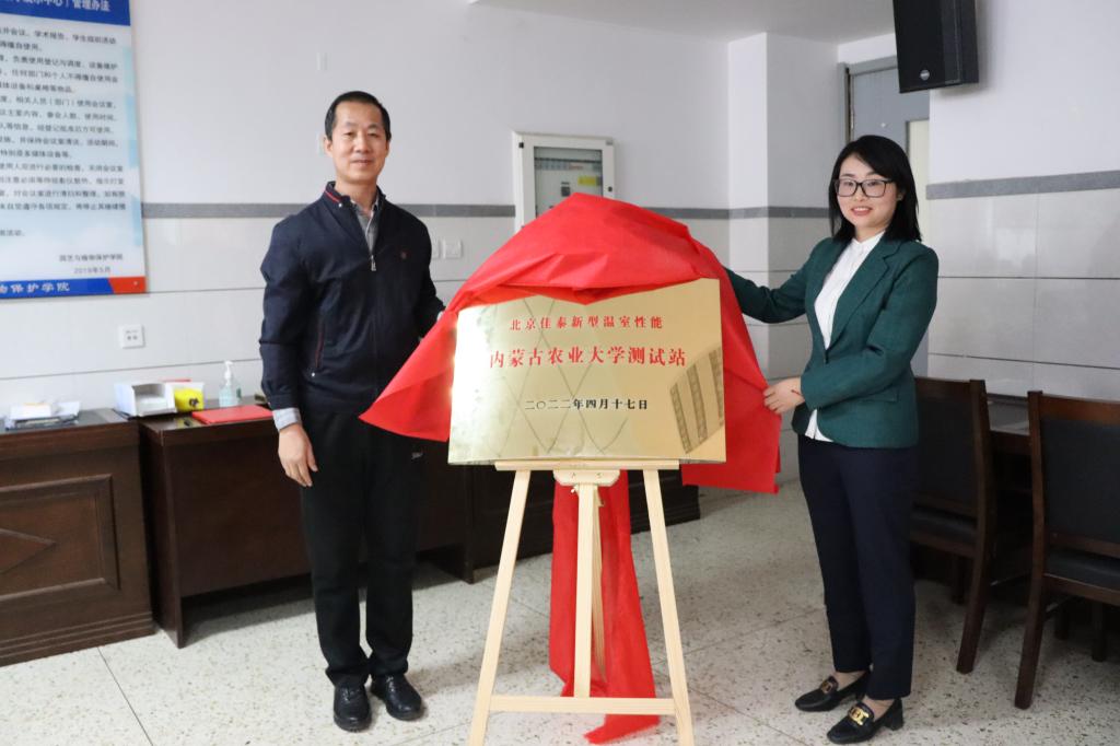 院长周洪友与北京佳泰新材料有限公司董事长刘苗进行了产学研院企合作现场签约仪式。内蒙古农业大校友会副会长、统战部部长张文和周洪友院长分别与刘苗董事长进行了“内蒙古农业大学实践教学基地”和“北京新型温室性能内蒙古农业大学测试站”的揭牌仪式。通过此次院企合作,能够很好地发挥企业优势,为学院师生提供良好的学习和实践平台,共同为促进学院、学校和社会发展贡献力量。
