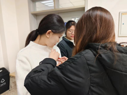 各位新发展团员的入团介绍人为本次发展的12名团员佩戴团徽。每个团员从佩戴上团徽的这一刻起,就意味着要肩负起团员的责任,履行团员的义务。