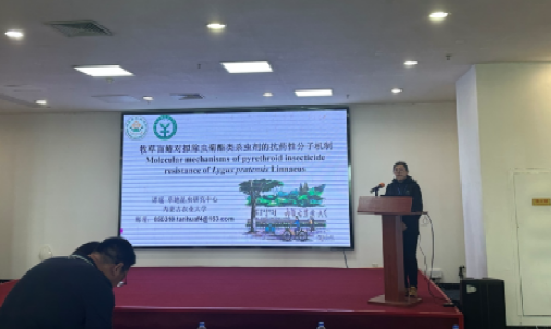 谭瑶副教授就团队近年来开展的人工牧草上重要害虫牧草盲蝽的发生、为害、抗药性机制及用药现状进行了详细汇报《牧草盲蝽对拟除虫菊酯类杀虫剂的抗药性分子机制》。