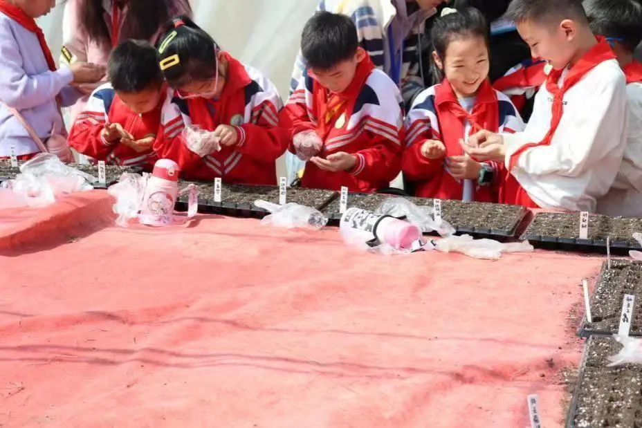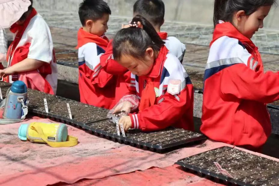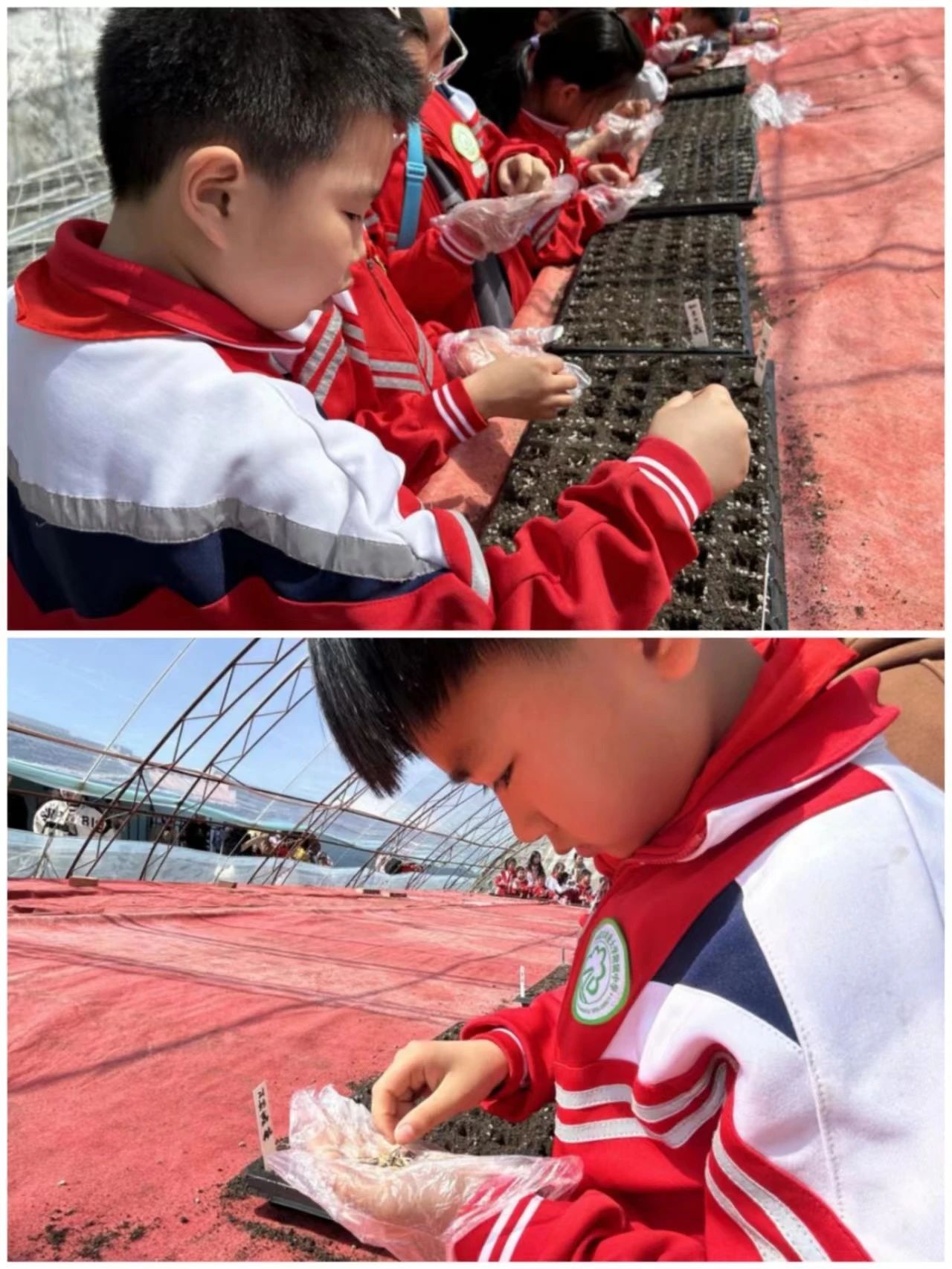 本次耕读文化研学活动,共设有参观植物病理标本室、参观昆虫标本室、体验播种活动三个部分。活动开始,同学们来到了植物病理标本室,路妍老师借助展台里的植物标本,为同学们介绍了植物标本的分类,并鼓励同学们要亲近大自然,留心观察大自然的花草树木。紧接着,同学们在志愿者的带领下来到了史丽老师的昆虫标本实验室,同学们化身小小昆虫探索家,利用显微镜观察昆虫、欣赏趣味贴画,使同学们明白了小小昆虫看似微不足道,却是生物链中重要一员,影响着整个自然界生态系统的平衡。最后,在志愿者的带领下,同学们来到了内蒙古农业大学耕读文化教育基地。随着郝喜龙老师的示范讲解,同学们了解了种植孔雀草的基本步骤,个个摩拳擦掌、跃跃欲试。播种、填土、浇水……同学们个个兴奋不已,享受着“田间课堂”带给他们的喜悦,期待孔雀草的发芽,感受到了劳动的艰辛。
