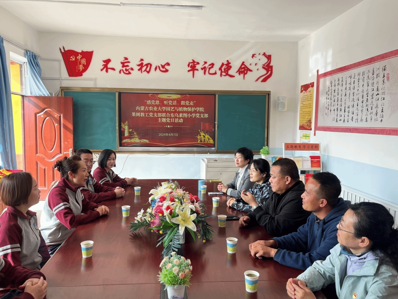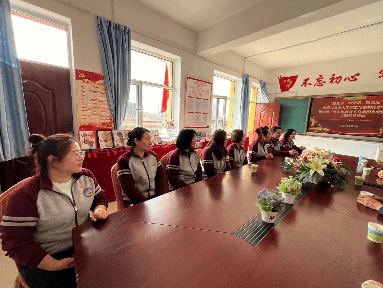 党委书记靳国斌等一行6人就“党支部共建促进耕读教育”、“如何构建高校与基础教育共同育人模式”等问题与东乌素图小学学校领导班子、党员教师进行了深入的座谈交流。希望通过活动的开展,助力高校与基础教育的牵手合作,促进劳动实践教育升级增效,共同助力学生成长。