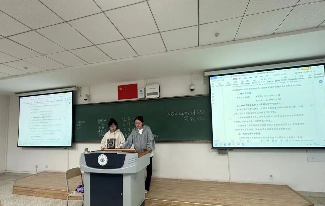 其次,学风建设中心的主任薛雯静和副主任杨楠带领同学们对校规校纪进行学习,并对大家容易出错的重要内容进行详细讲解。同时,对后期的校规校纪考试要求进行了简要说明。在讲解过程中,同学们积极认真,按照讲解对重点内容进行标记。