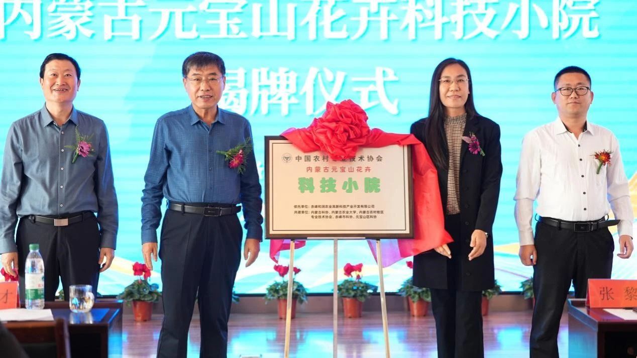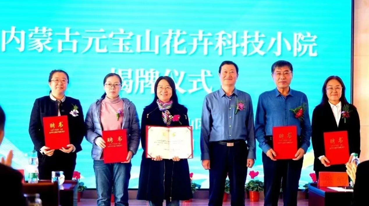 副院长刘杰才、元宝山区科学技术协会副主席张黎、元宝山镇副镇长宋元索、和润农业副总经理宿德有共同为“内蒙古元宝山花卉科技小院”进行揭牌。宣布内蒙古元宝山花卉科技小院正式成立!