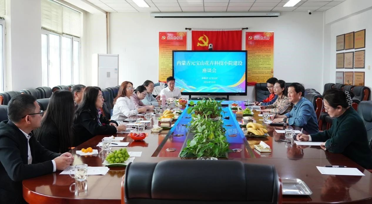 揭牌仪式后,举行了元宝山花卉科技小院建设座谈会。