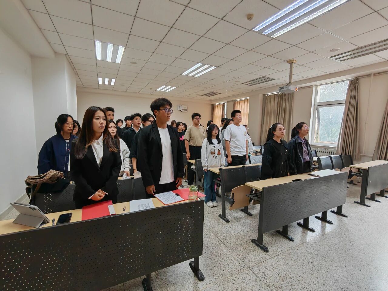 会议在激昂的中国共产主义共青团团歌声中拉开帷幕。随后,团支书代表田景文同学发言时表示,团干部不仅是一种荣誉,更是一份沉甸甸的责任,自己将恪尽职守,为学院发展做出贡献。