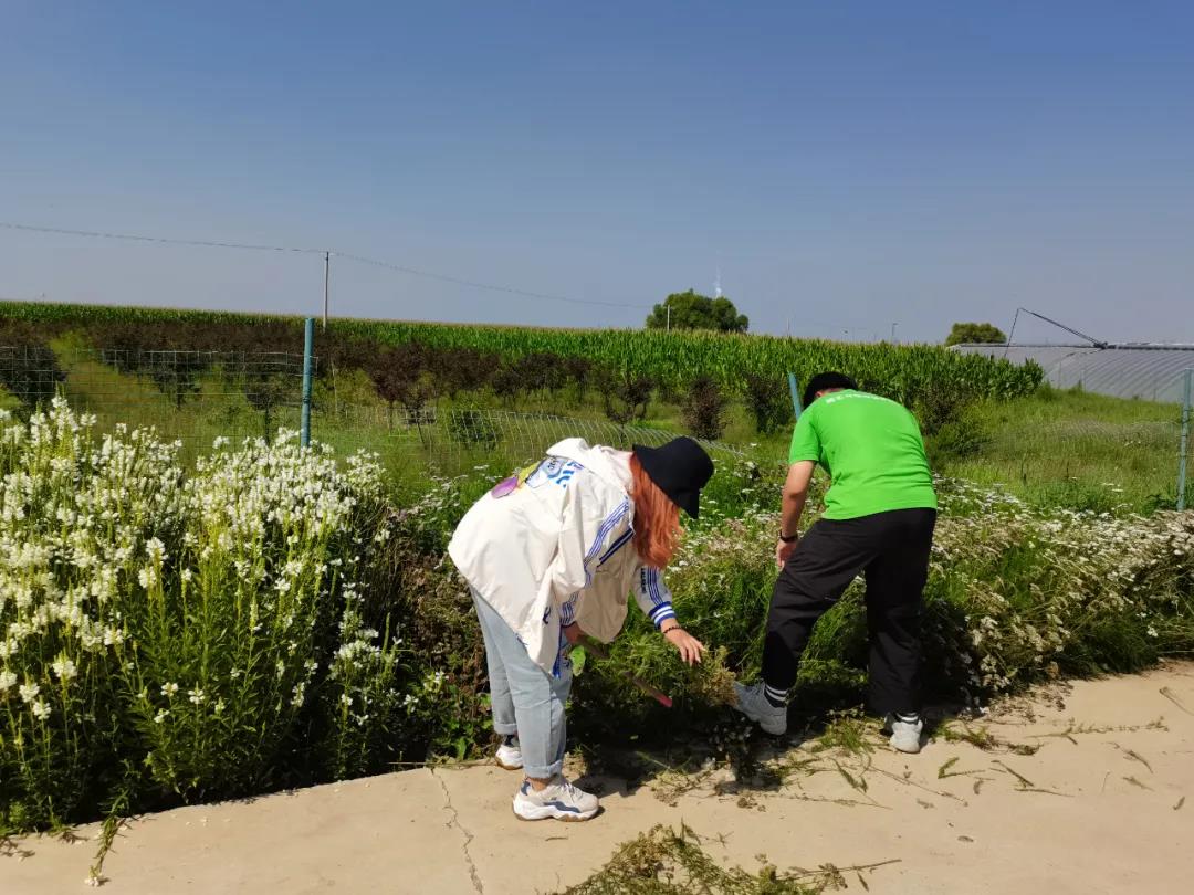牧蕊鲜花蔬菜基地工作人员为同学们讲解了蔬菜种植的技巧和注意事项。基地中的部分区域是供散客采摘,部分区域是供城市居民租赁。据了解,在这里租赁土地的城市居民如同真真实实的农民去辛苦劳作,开垦土地,种植各种蔬菜,等到收获季节,享受自己的劳动果实和绿色蔬菜,这是现代发展的一种新兴产业。接着,基地工作人员向同学们介绍了基地负责人段飞,80后创业者段飞毕业于内蒙古农业大学,毕业后扎根农村创业,他以专业知识技能开拓新市场,以科学精神激发新型农业发展,以服务农民来扶持当地农村经济。创业者的故事使在场同学受到鼓舞,大家纷纷表示:要牢记学农人的初心和使命,学好专业知识,将来回报社会。随后,同学们帮着工作人员开始除杂草,顶着炎炎烈日,没有任何一位同学喊苦喊累,体现了学农人的良好品质。
