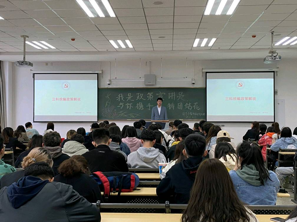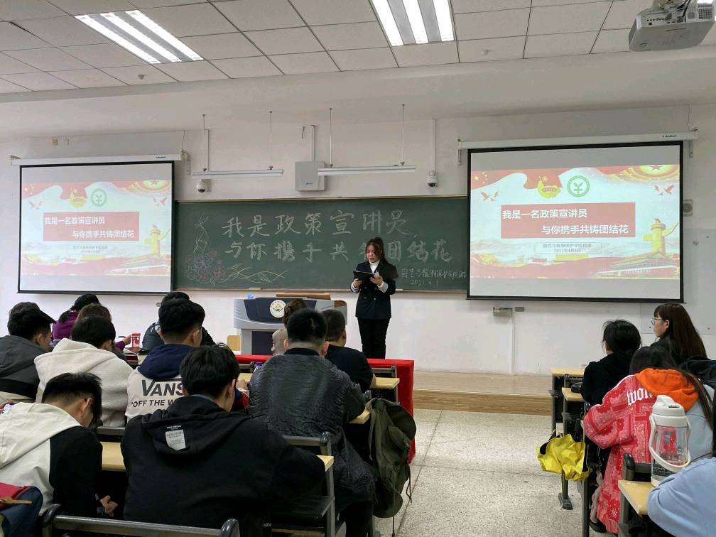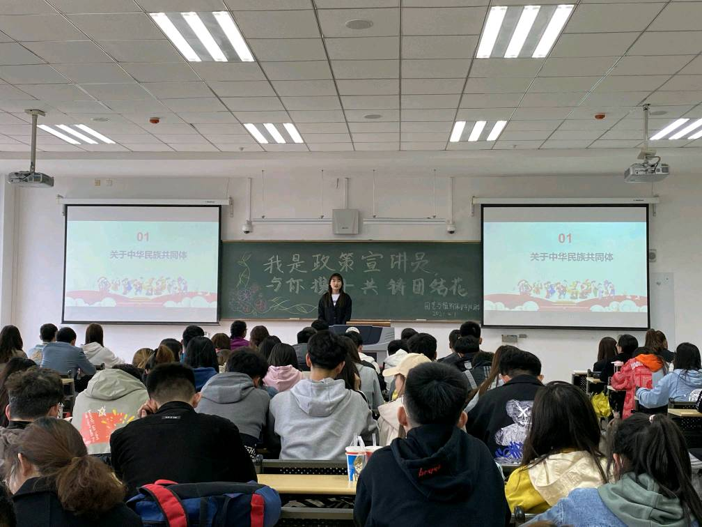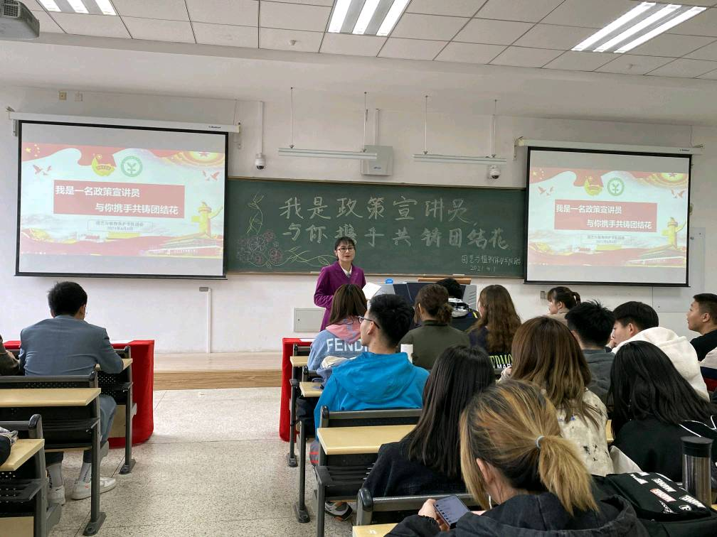 在新区南教118举办“我是一名政策宣讲员,与你携手共筑团结花”主题演讲比赛,团委老师郝凤英、辅导员韩凯如、分团委学生干部以及各班班委参加此次活动。