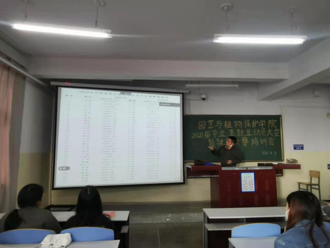 会议伊始,尤丽老师向大家介绍举办本次会议的目的,希望同学们通过听会顺利就业,为社会创造有益价值。接下来张卫中老师开始为同学们解答就业相关问题。张老师说大家应当首先明确就业手续办理程序,这对同学们日后开展就业相关事务起着巨大作用。了解程序、解决问题,找到问题所在才能让同学们从毕业的起跑线顺利出发。张卫中老师还讲到:认清国家及自治区当前政策方针也对同学们就业方向有引导作用。张卫中老师通过习近平总书记的一段话向同学们引出了应当如何认识自己、审视自己、定位自己,让自己走过的每一步路都不浪费。为了更加客观的说明当前毕业生就业形式,张卫中老师用柱形图、表格等形式依次从全国、自治区到园保院的顺序为大家展示了经济占比、毕业生人数变化、就业情况统计。继而,张卫中老师还分别从全国看内蒙,内蒙看全国的角度为大家解析了农产经济近年发展状况,简略在大家眼前描绘了一幅职业生涯蓝图。最后,张卫中老师从我们的专业出发,寄予美好期许,希望同学们充实自己、培养吃苦耐劳的品质,发扬园保精神、农大精神。本次培训会在大家的掌声中圆满结束。