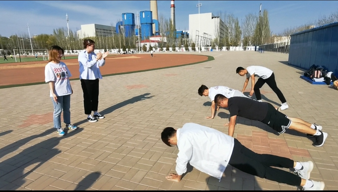 在最后一个游戏中,除一名主持人外其余同学围成大圈,男生代表五角钱,女生代表一元钱,音乐开始大家绕圈走,主持人随便说一个数字,同学们需对应抱成团,出现抱团数不符合说的数字的同学接受惩罚,最终,程远达,高星洁,李岩林,丁阳等同学做了十个俯卧撑。