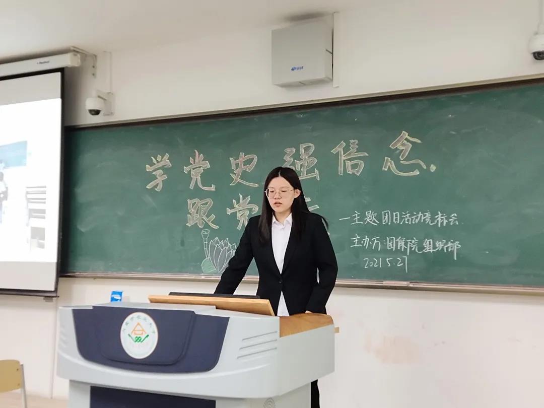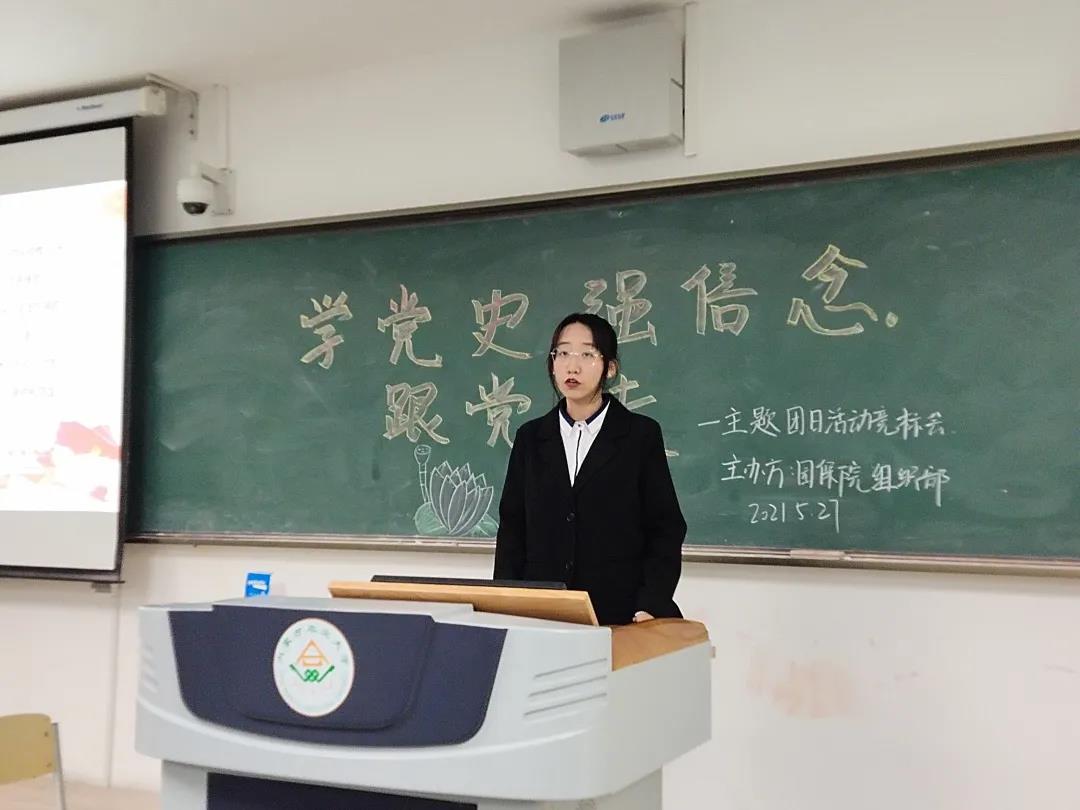于南教222教室举办主题为“学党史,强信念,跟党走”的团日活动竞标会。团委老师郝凤英出席本次活动,分团委组织部张晓昂作为本次活动的主持人。