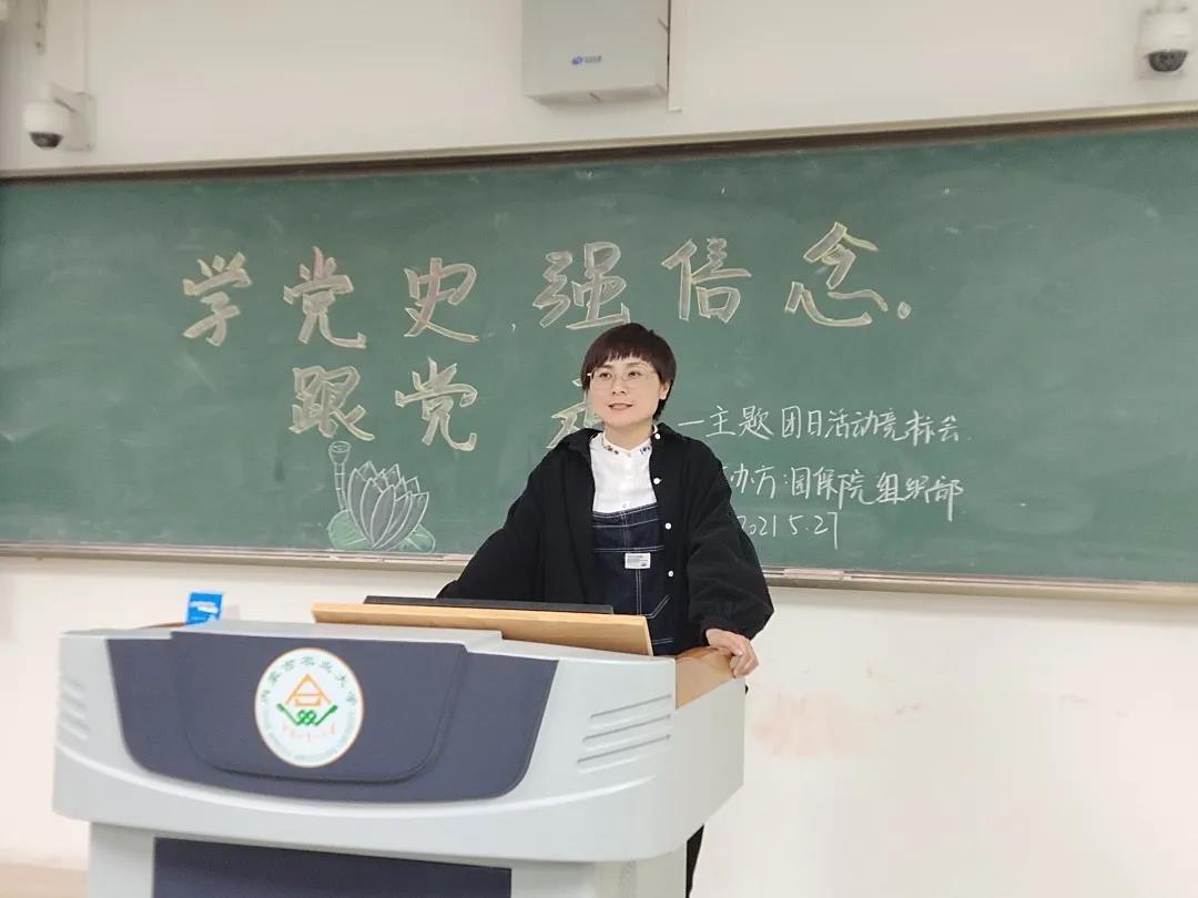 随后,18级的王浩羽、王丹同学为大家分享了实习期间的工作内容和趣事。从两位同学的分享中,同学们了解到农业事业的重要性,清楚地认识到农业发展的迅速,身为农学子更应该努力学习,将小我融入大我,厚植爱国情怀,做一懂双爱农科学子,为农业到发展贡献自己的一份力量。接着,由赵彤、陈艳赫同学为大家带来诗朗诵《永远的旗帜》。最后,郝凤英老师对本次竞标会总结到:从团日活动竞标会的汇报中能感受到一个团支部的活力与凝聚力,希望同学们能够用心组织每一次的团日活动,提升班级凝聚力。希望同学们能够继续加强对党史的学习,增强信念,将对党的热爱融入自身,努力学习,团结同学,爱护集体荣誉。