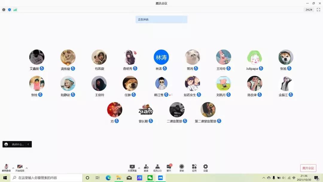 主持人带领大家回顾了过去两年中我国在抗疫斗争中的启示,结合当下新一轮疫情,道出如今是对大家的考验,指出上网课导致一部分人对学习的懒散、怠慢等态度及生活不规律等不良现象,希望同学们及时的反思。随后,同学们就“疫情期间如何做好本职工作,如何修身养性”开展讨论。