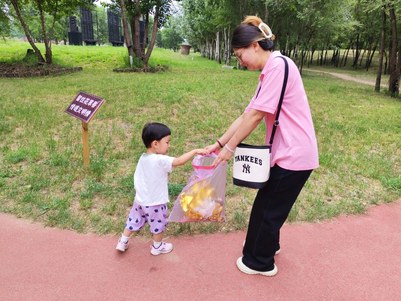 在活动进行过程中,出现了令人惊喜的一幕。小朋友看到同学们在捡拾垃圾,也被同学们的行为所吸引,主动过来投掷垃圾,为此次环保之行做出贡献。