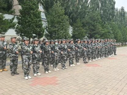 骄阳洒下光辉,一阵阵风吹过,夏天也翻篇到了结尾。在这夏末秋来的时节,太阳还会时不时散发余威,在它的照耀下,同学们依然昂首挺胸,端正笔挺。头顶的热浪,滑落的眼镜,顺着脸颊流下的汗水,无时无刻不在磨练着同学们的意志。但队伍里没有人晃晃悠悠,取而代之的是白杨树般的挺拔。