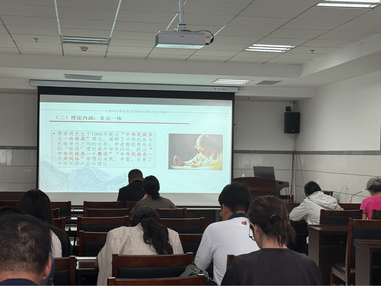 于2025年9月11日在生科楼419室,组织全体教工观看《铸牢中华民族共同体意识,全方位建设模范自治区》线上课程。