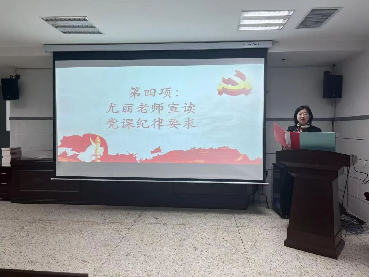 四是尤丽老师宣读党课的纪律要求。她明确要求学员们端正学习态度,认真听讲、做好笔记;保持会场肃静,手机调至静音或关闭;不迟到、不早退、不随意走动;以饱满的政治热情和严谨的学风,确保学习取得实效,展现党员的优良作风,同时,严明的党课纪律,也是确保学习成效、锤炼党性修养的根本保障。