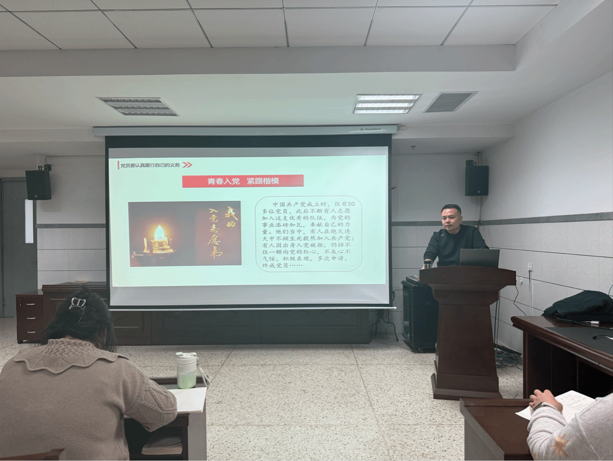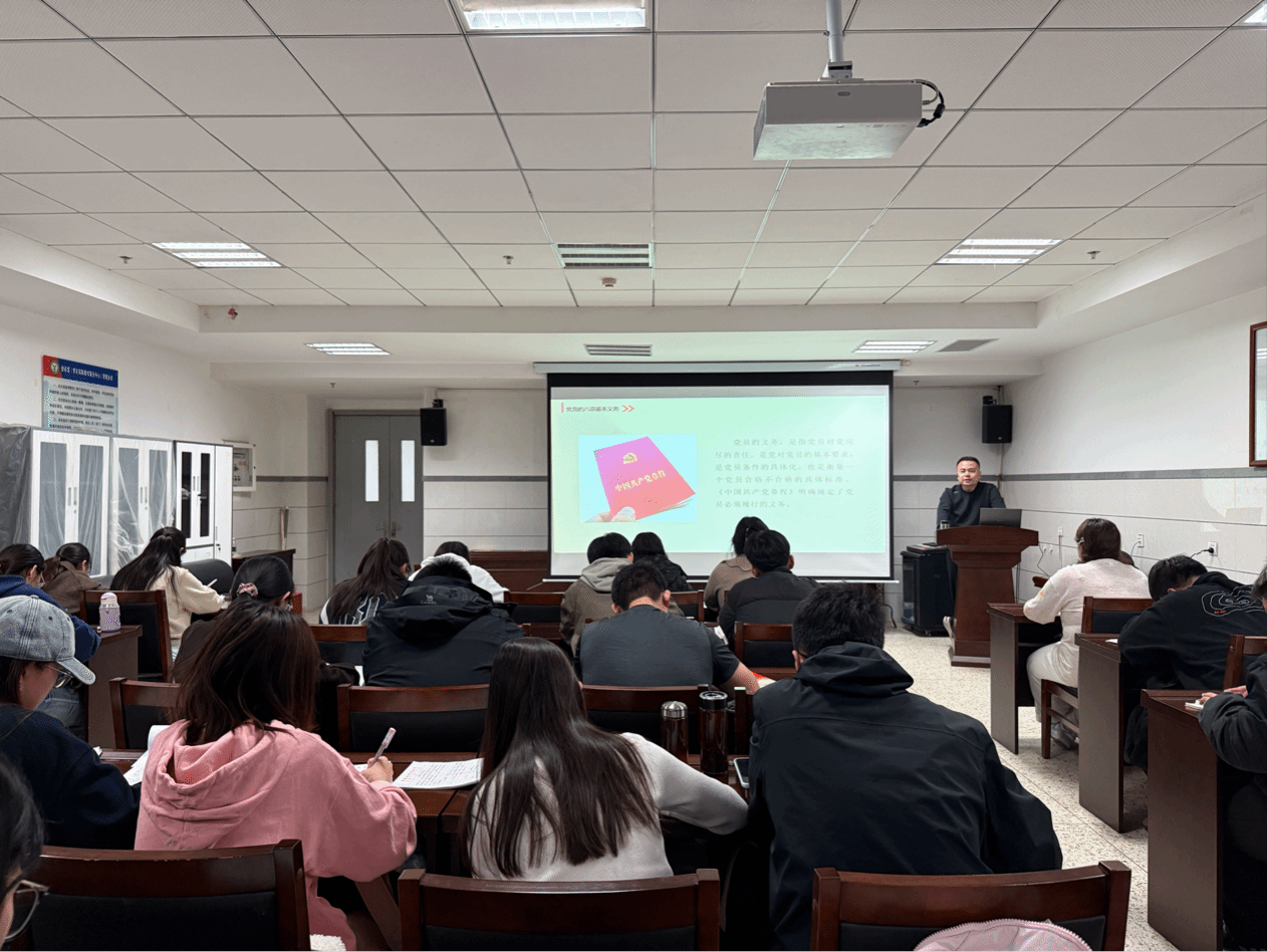 第十四期入党积极分子齐聚生科楼419室进行党课培训班第八讲的学习。本次党课课题为《党员的权利与义务》,由校党委组织部党校负责人张永亮老师讲授。