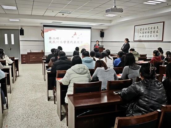 党委副书记李艳老师、党委组织员尤丽老师出席典礼,全体发展对象参会。