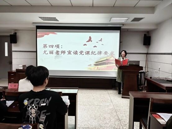 典礼最后,尤丽老师详细宣读了本期党课的纪律要求,从课堂考勤、学习纪律、讨论课规范等方面作出明确部署,强调培训期间的纪律既是约束、更是保障,要求学员们以严谨的态度投入学习,确保培训取得实效。