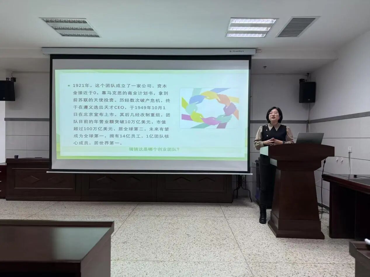 尤丽老师以“史上最牛创业团队”的趣味设问开篇:1921年,13人组成的团队以近乎为零的资本金起步,凭借马克思主义的“商业计划书”凝聚力量,历经28年奋斗实现“上市”,如今已发展成为拥有14亿“员工”、年营业额突破10万亿美元的“超级组织”。这一生动类比,使学员们感受到了党史与创业实践的内在联结。