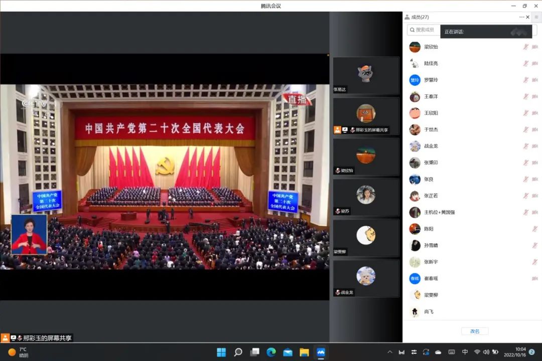 园艺本科生党支部和植保本科生党支部联合组织支部党员在腾讯会议观看中国共产党第二十次全国代表大会开幕会直播。