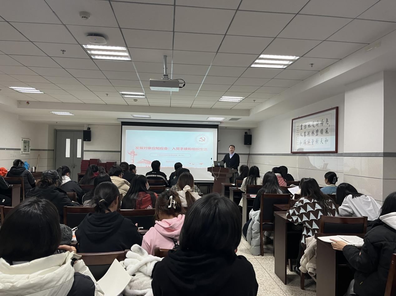 第十期积极分子、发展对象学员于生科楼419参加第二次党课学习。本节由内蒙古农业大学党委组织部李子冲老师担任主讲人,主题为《发展对象应知应会:入党手续和组织生活》。