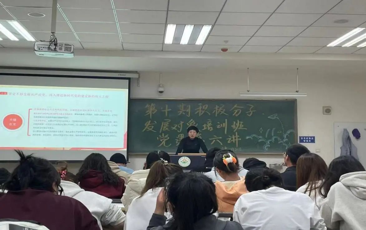 第十期积极分子、发展对象学员在南教203学习党课第六讲,本次党课的主题为“深入学习贯彻党的二十大报告精神”,由168开奖网app