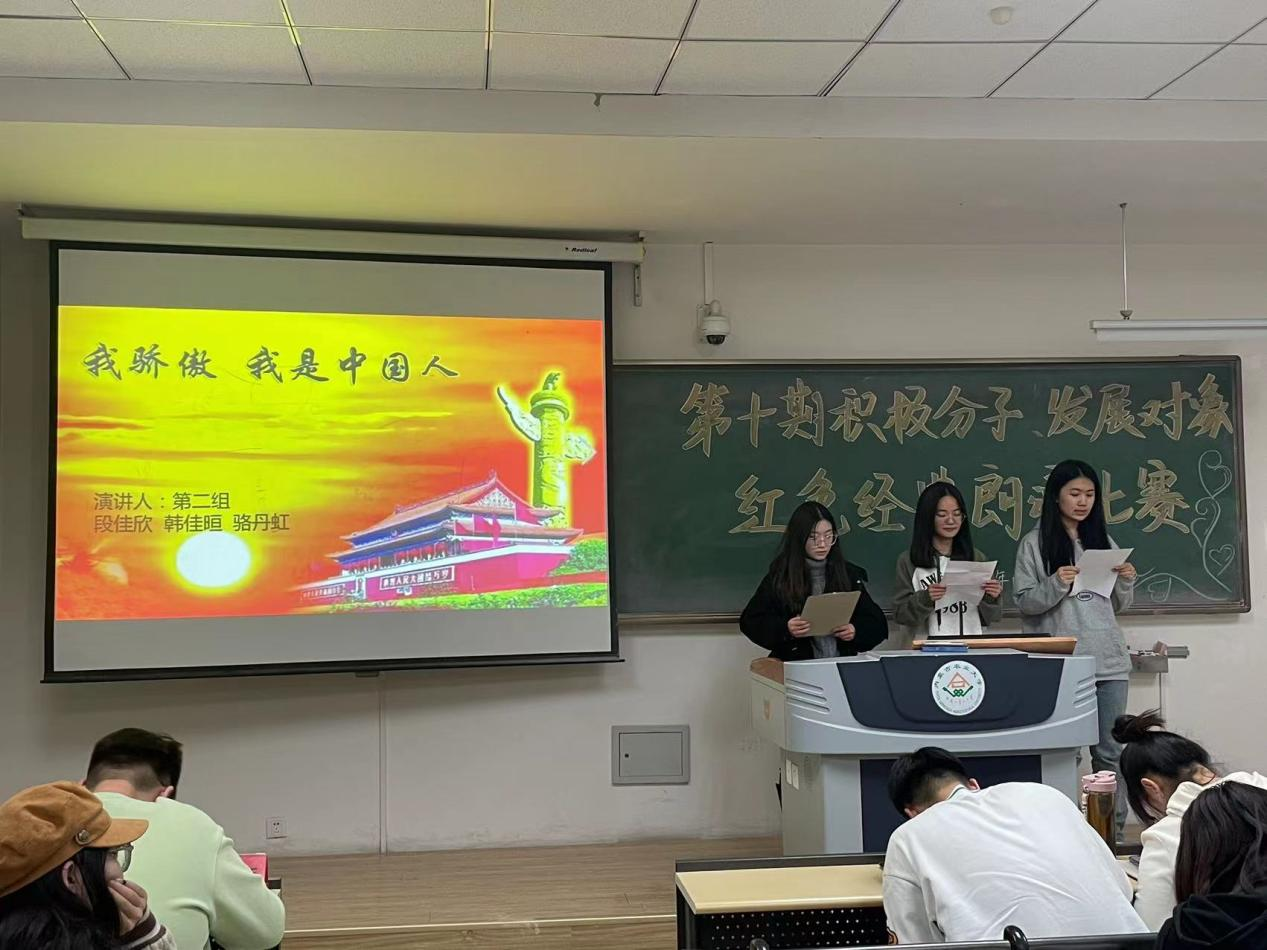 党员服务站于南教217举办“传承红色经典,赓续红色血脉”主题朗诵比赛,第十期积极分子、发展对象全体学员参加,党员李嘉诚、高鸿宇、范程硕、田卓然、王一鸣出席并担任评委。
