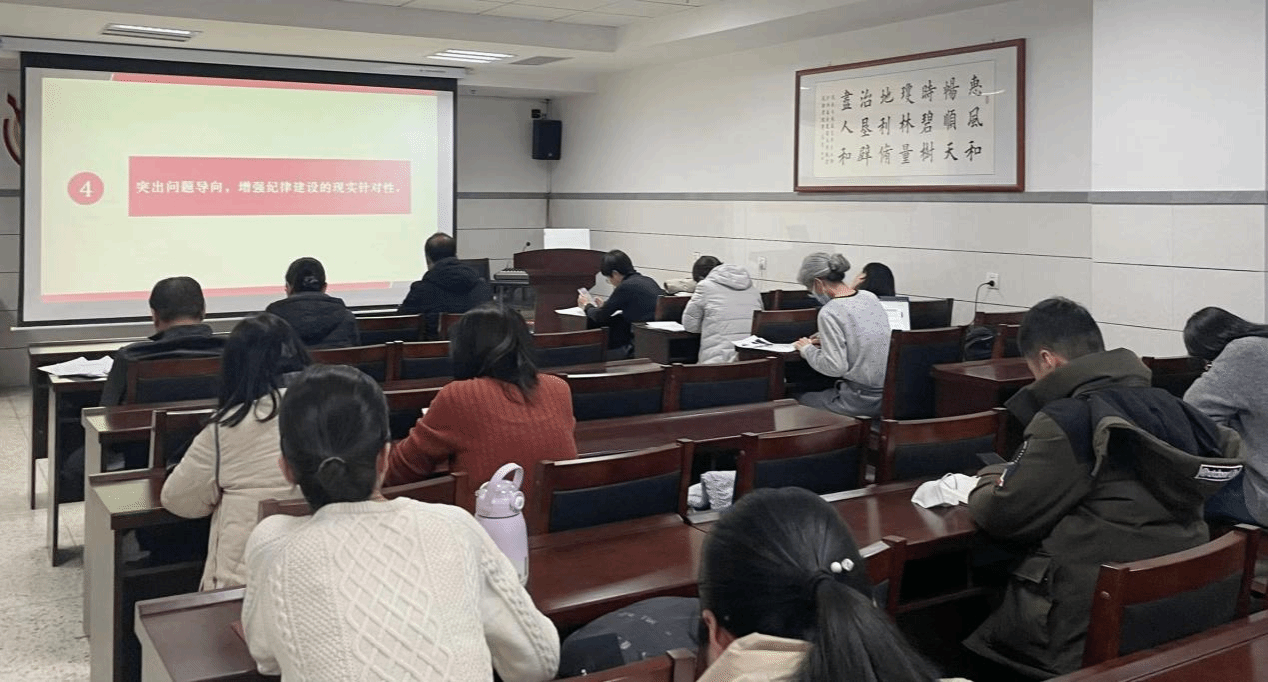 教工在生科楼419参加学习《中国共产党纪律处分条例》培训会。