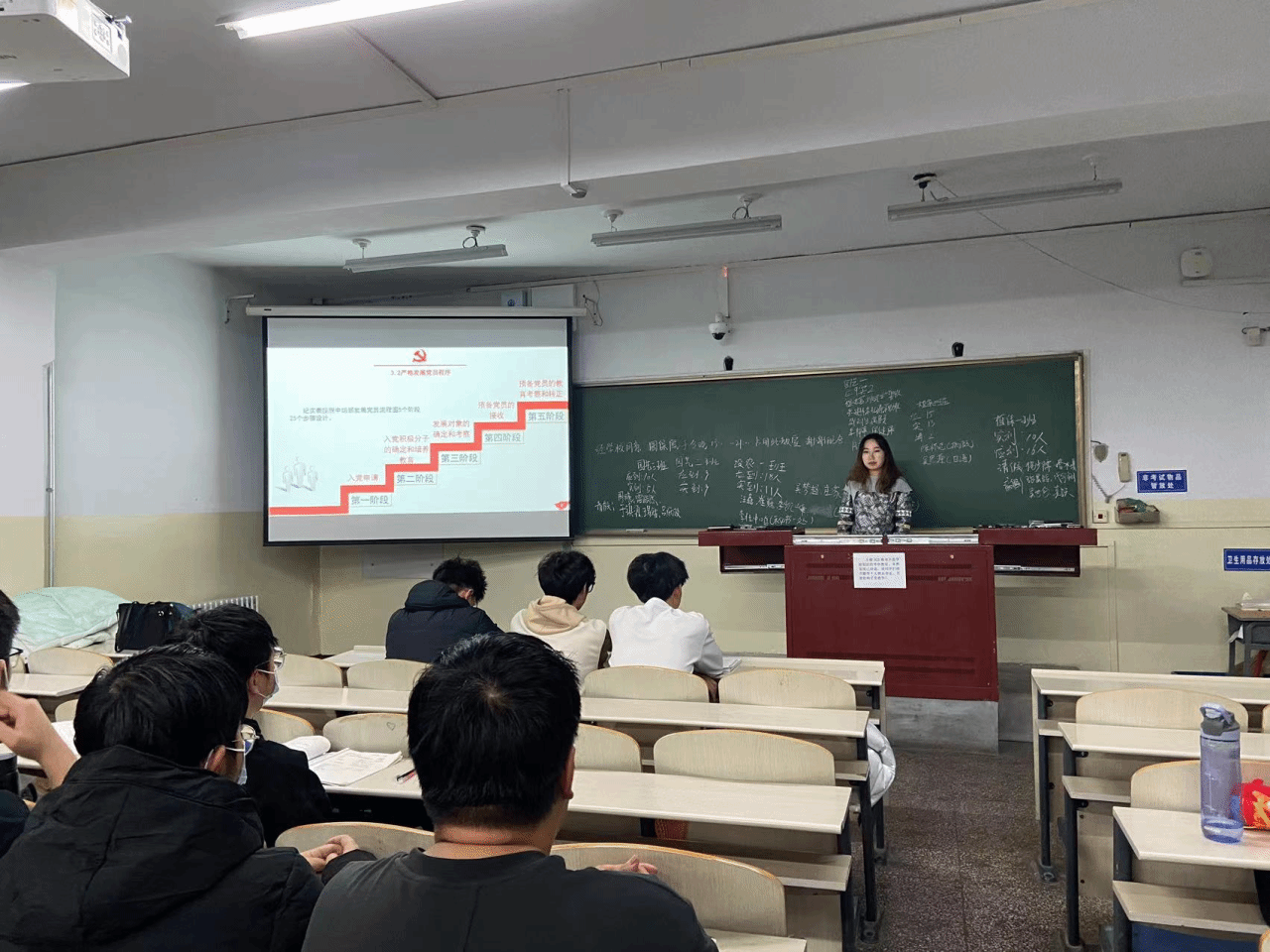 会议上,刘琪从发展党员工作流程、发展党员有关规范和有关文书档案等方面说起,重点围绕入党流程——申请入党、入党积极分子的确定和培养教育、发展对象的确定和考察、预备党员的接收、预备党员的教育考察和转正等五个方面进行详细解读,引导新生坚定信仰、端正入党动机,积极向党组织靠拢。