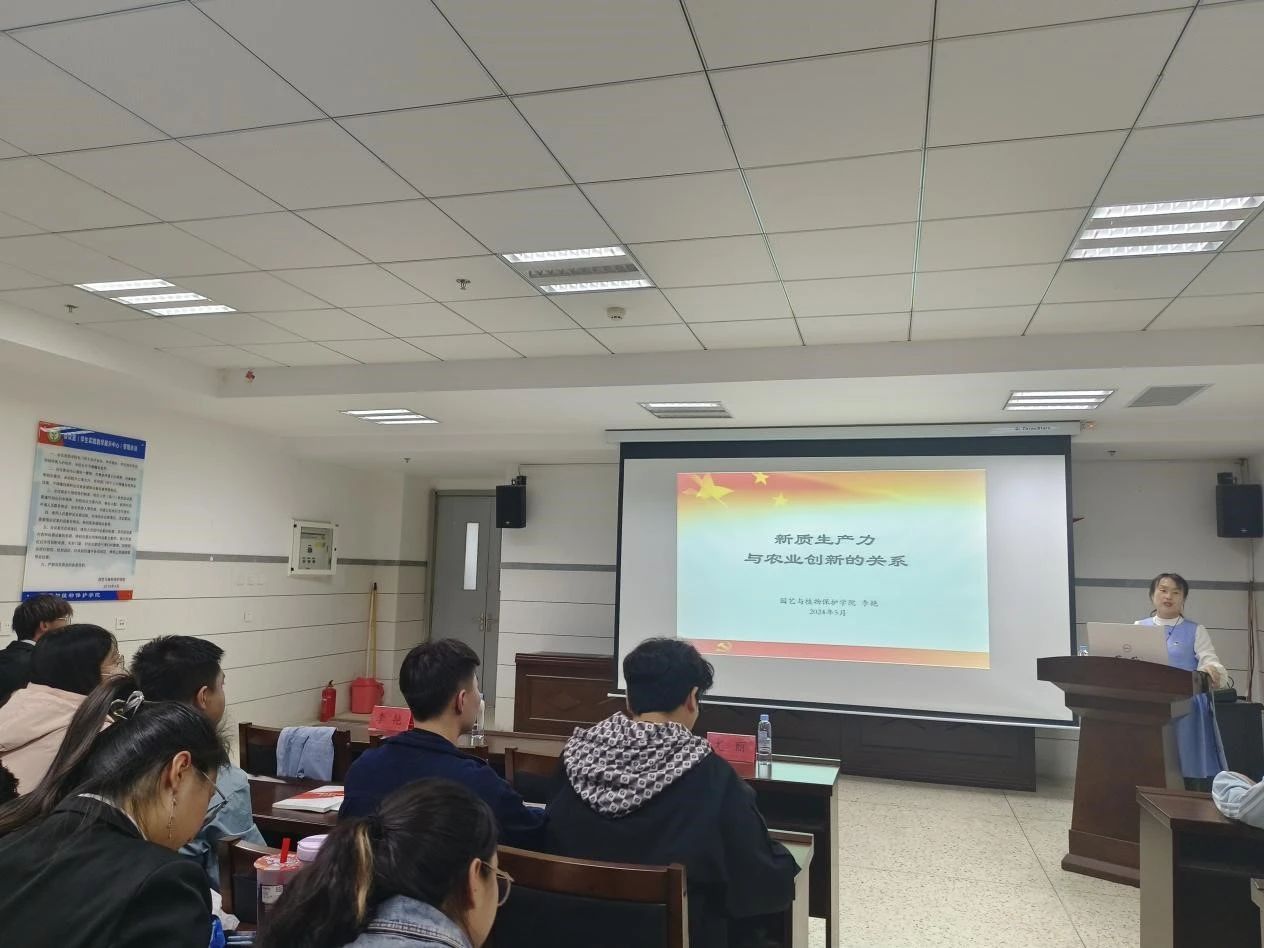 在生科楼419室举办第十一期入党积极分子、发展对象党课第一讲。党课第一讲主题为《新质生产力与农业创新的关系》,由党委副书记李艳担任主讲老师。