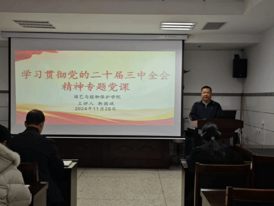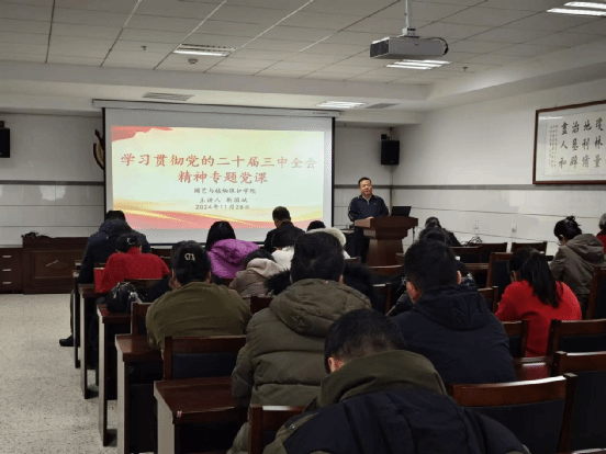 于2024年11月28日下午三点在生科楼419,组织全体教工学习贯彻党的二十届三中全会精神专题党课,由168开奖官网
