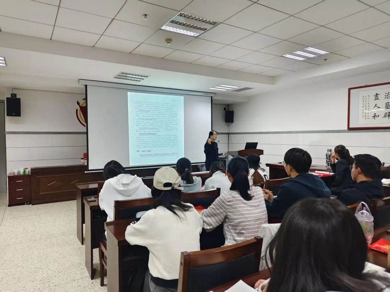 李艳副书记讲到:广大入党积极分子应深入学习两会精神,提升政治觉悟。通过集中学习、专题讨论等方式,理解国家发展的总体方向和政策重点,立足"学、思、践、悟"四个维度,将两会精神转化为实际行动,以“向上”的奋斗姿态和“向善”的服务意识,在学习和实践中锤炼党性,为社会发展贡献力量。