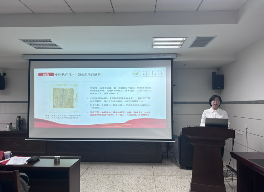 本次党课,尤丽老师围绕中国共产党如何在时代浪潮中捕捉机遇、发展壮大的核心议题,通过对新文化运动、抗日战争、抗美援朝等重大历史节点的深度剖析,深刻揭示了我党辉煌成就背后的精神底蕴——那是由无数党员无私奉献与无畏牺牲铸就的崇高精神。先贤们手握马克思主义的真理之剑,不懈探索、大胆实践,成功铺设了一条充满中国特色的马克思主义道路。