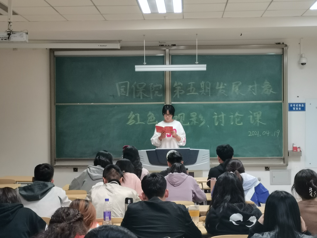 于4月19日晚,在新区南教316举行第五期发展对象红色观影讨论课。第五期全部发展对象参加,部分正式党员出席。
