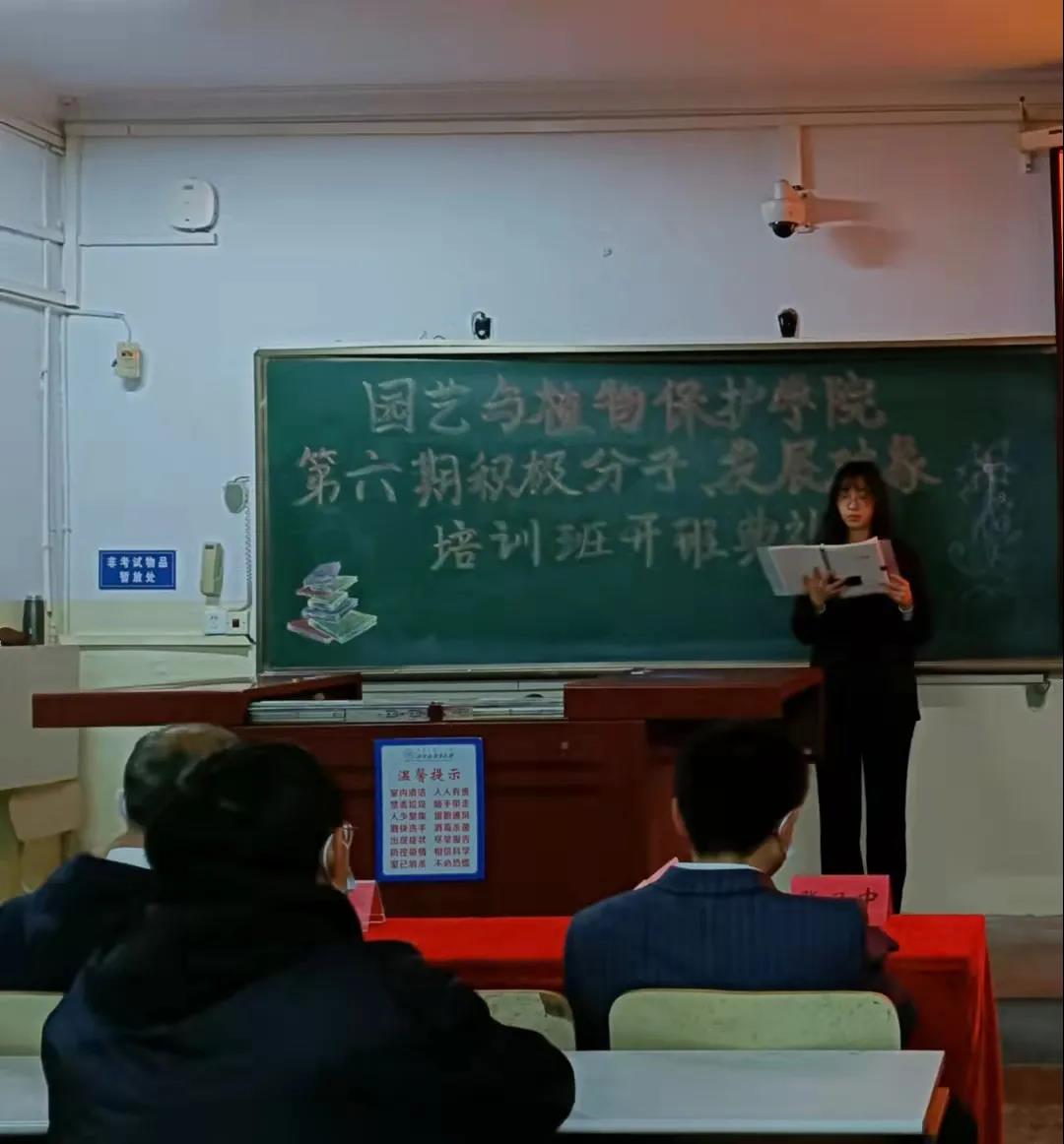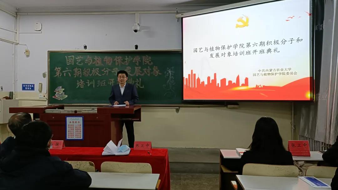 开班典礼在庄严嘹亮的国歌声中拉开帷幕。随后,本期发展对象培训班学员代表贾安琪在发言中讲到:知行合一,前路方可期,知是行之始,行是知之成,在今后的学习与生活中要更加严格要求自己,提高自己的思想认知,自觉践行社会主义核心价值观,不忘初心砥砺前行。本期积极分子培训班学员代表丹阳发言中表示:在此次培训中要努力学习理论知识,提升自我,更加坚定理想信念,用实际行动践行自己的入党初心。最后,张书记在讲话中强调:本期的积极分子和发展对象应该认清时代赋予青年的使命,知农爱农强农兴农,发扬“吃苦耐劳、勇往直前、不达目的、誓不罢休”的蒙古马精神,积极向党组织靠拢,用实际行动为加快推进农业农村现代化,实现乡村全面振兴贡献力量。