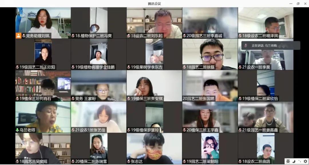 第六期发展对象党课第三讲以“实现中华民族伟大复兴”为主题于腾讯会议开讲。本次培训课由内蒙古农业大学原食品科学与工程学院党委书记,现任内蒙古关工委老教授报告团副团长乌兰老师担任主讲人,全体第六期发展对象、第三期青马班成员及党务助理参与本次党课。