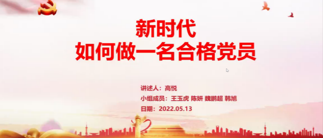 啜泽润同学以“弘扬伟大抗疫精神,实现民族伟大复兴”为题,从以人民为中心的崇高价值、党中央的坚强领导、全国一盘棋的动员机制三个方面展示了抗疫的历程与必胜的决心。高悦同学以“新时代如何做一名合格党员”为题,从中国共产党的发展历程、牢记党员身份的重要意义、怎样做一名合格党员、新时代青年该如何做一名合格党员四个方面为大家讲解。张竞丹同学带领大家学习解读十九届六中全会概述,从八个数字学习全会公报,总结出一切伟大成就的都是接续奋斗的结果,一切伟大的事业都需要在继往开来中推进。张易达同学为大家带来了抗美援朝的真实故事,战争的惨烈超乎想象,一组组伤亡数字触目惊心,最后,他呼吁大家,要永远继承和发扬伟大的抗美援朝精神,练好本领,用实力担起历史的重任,为民族复兴奋斗终生。