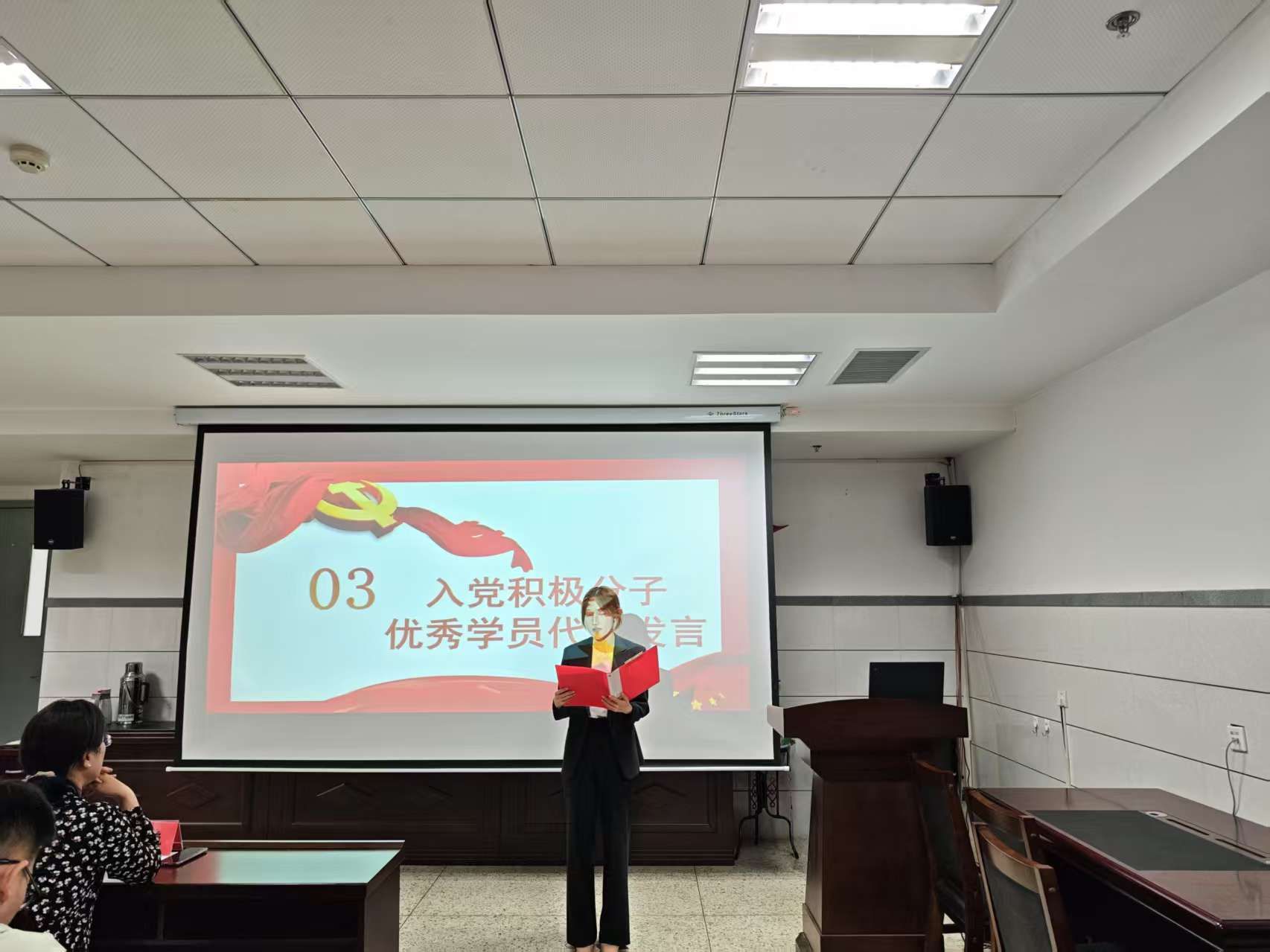 积极分子优秀学员代表李沛臻上台发言,她说:“路漫漫其修远兮,入党之路任重而道远, 我们应该将此次学习作为新的起点,不忘初心、牢记使命,以思想之光引航,用行动之力逐梦,不负期待,不负韶华,努力向党组织靠拢,争取早日成为一名光荣的共产党员,为实现中华民族伟大复兴的中国梦贡献自己的青春力量。”在最后,她再次感谢党组织和老师们的辛勤付出,让他们在党课学习中不断成长。
