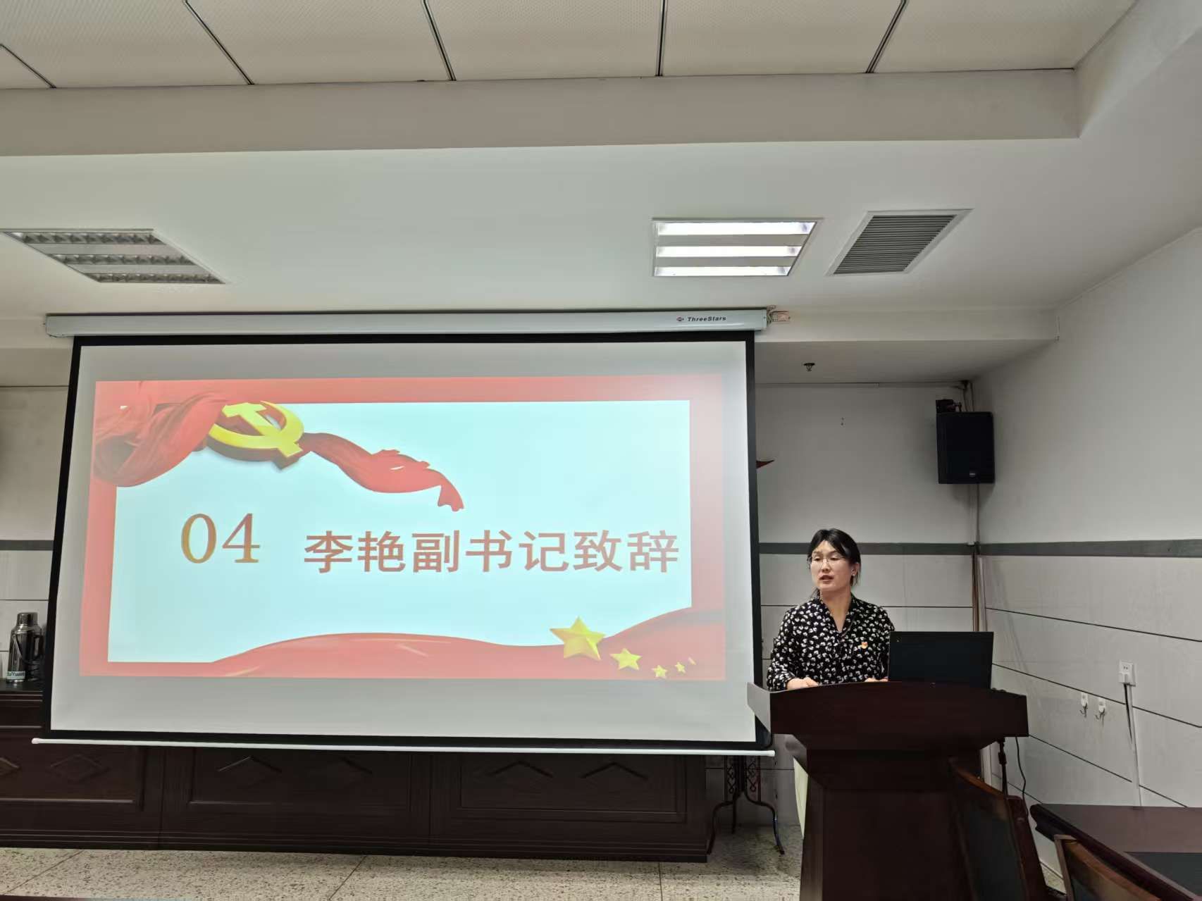 党委副书记李艳老师、党委组织员尤丽老师出席。会议第一项,全体参会人员面向国旗,奏唱国歌。