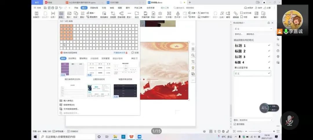 培训会前,李嘉诚同学对应用软件培训必要性进行了简要阐述。随后,李嘉诚同学就Word、Excel、PPT基本应用操作展开培训,结合实际应用软件及相关操作知识,由浅入深,从文字处理、页面设置、格式统一、表格制作、筛选、排序、图片、音频的插入、材料打印等基础操作入手,通过实际案例对日常工作、学习中常用的操作和表格函数进行了详细的讲解。整个培训过程中大家严肃认真,氛围良好。