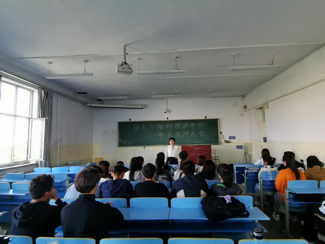于东主422举行学生会部长换届选举答辩会。团委老师郝凤英、学办老师尤丽、专职辅导员老师王荣以及各部室部长担任评委,30位候选人参与了本次答辩。