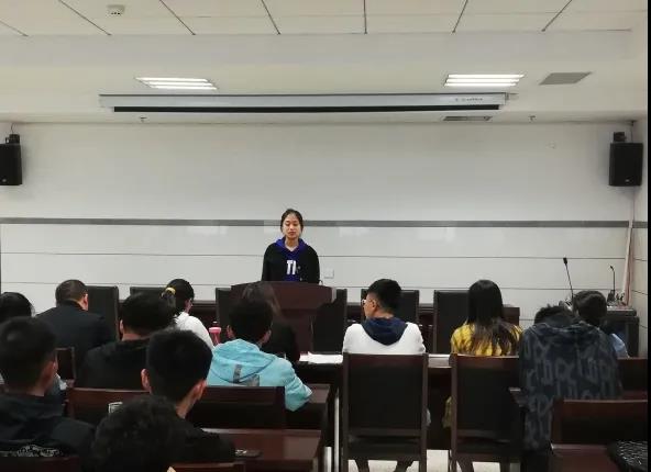 于生科楼419举行学生会主席团换届竞选答辩,学生工作办公室老师尚飞、团委老师郝凤英、学生会主席出席,学生会干部担任大众评审团参加此次答辩会。